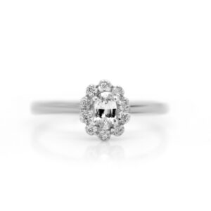 Pierścionek z białego złota z brylantami i białym szafirem 0.06 ct 23
