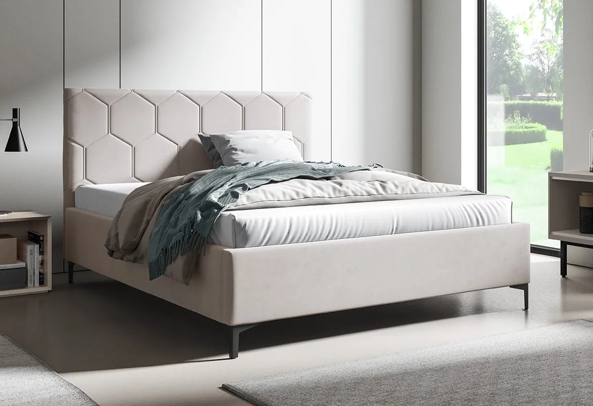 Łóżko tapicerowane Noemi 160/200 przeszycia plastry miodu Trinity 19