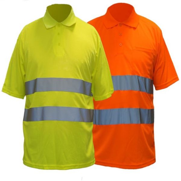 Koszulka polo wykonana z fluorescencyjnego materiału Bird Eye ( "ptasie oko") w kolorze żółtym lub pomarańczowym z granatowymi wykończeniami (kołnierzyk, ściągacze przy rękawach, dół). Zapinana na 3 guziki, po lewej stronie praktyczna kieszonka. Na torsie naszyte 2 pasy odblaskowe o szerokości 5 cm.