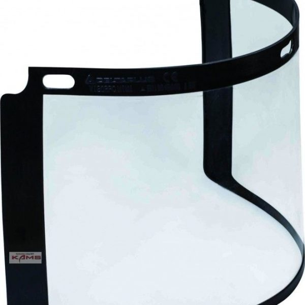 Zestaw 2 bezbarwnych osłon twarzy z poliwęglanu z plastikowym brzegiem.