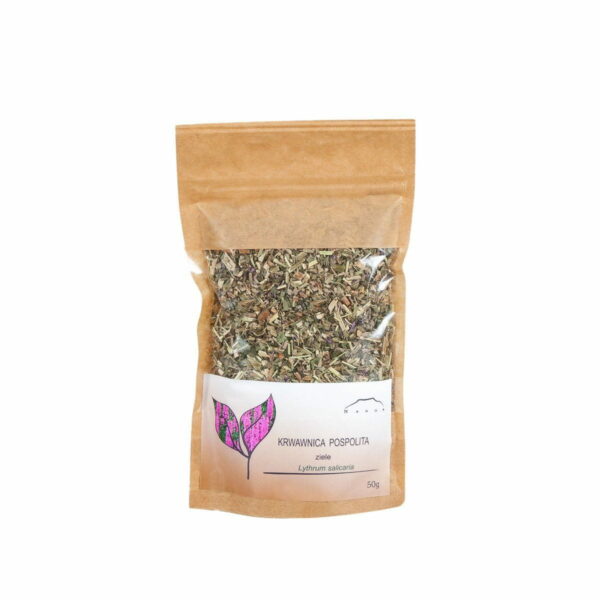 1. Krwawnica ziele Krwawnica pospolita (Lythrum salicaria) – roślina rosnąca w większych skupiskach o lancetowatych liściach i różowych, kłosowatych kwiatostanach. Występuje powszechnie na glebach wilgotnych w Europie, Azji i Afryce. Surowcem zielarskim jest jej ziele, a dokładnie jego szczytowe części pędów. Stanowi ono źródło m.in.: garbników, alkaloidu – kriogeniny oraz glikozydu – salikaryny. Krwawnica, jak sama nazwa wskazuje, stosowana jest w fitoterapiach do łagodzenia krwawień, zarówno zewnętrznych, jak i wewnętrznych. Napary z tej rośliny przynoszą ulgę w przypadku podrażnień w przewodzie pokarmowym oraz korzystnie wpływają na przebieg krwawienia miesiączkowego. Wyciągi z krwawnicy można wykorzystać jako składnik kojących okładów na przekrwione oczy i drobne zranienia. Po herbatki z ziela warto sięgać, gdy czujemy dyskomfort ze strony układu trawiennego oraz w przypadku obfitej menstruacji. To także sprawdzony środek ziołowy wspierający regenerację podrażnień skórnych. Jest łagodny, dlatego nadaje się również do przemywania miejsc intymnych i innych, delikatnych części ciała. Właściwości prozdrowotne Działa kojąco w przypadku obfitych menstruacji. Łagodzi podrażnienia w przewodzie pokarmowym. Wspiera gojenie się ran, obić, siniaków i innych podrażnień skórnych. Działa regenerująco na przekrwione oczy. Produkt najwyższej jakości! Kraj pochodzenia: Polska 2. Składniki Ziele krwawnicy pospolitej 100%. 3. Zalecany sposób użycia 1 łyżkę ziela zalać szklanką wody, zagotować, po czym odstawić na 30 minut pod przykryciem.Wypijać 1-3 szklanki dziennie lub zastosować zewnętrznie do okładów na oczy, przemywania skóry, płukania włosów oraz jamy ustnej i gardła. 4. Sposób przechowywania Przechowywać w miejscu niedostępnym dla dzieci!Przechowywać w suchym i chłodnym miejscu.Chronić przed bezpośrednim światłem słonecznym. 5. Przeciwwskazania Nie należy stosować w trakcie ciąży i laktacji. Część rośliny: ziele Kraj pochodzenia: Polska Zdrowie: Regulacja miesiączki, Higiena jamy ustnej Zastosowanie: Pielęgnacja włosów, Pielęgnacja oczu, Rany i otarcia Ostrzeżenia: Nie stosować w ciąży, Nie stosować podczas laktacji