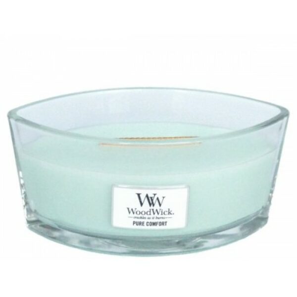 Świeca zapachowa Pure Comfort Elipsa z serii Core. Świeca Elipsa WoodWick wprowadzi do Twojego domu kojący dźwięk iskrzących płomieni i zachwycający zapach. Odtwórz ciepłą i relaksującą atmosferę palącego się kominka gdziekolwiek zechcesz, dzięki świecy Elipsa WoodWick® z technologią HearthWick®. Nasycone zapachy, radośnie tańczący płomień i kojący dźwięk skwierczącego drewna.