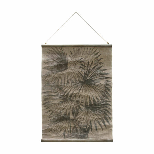 Ciekawy i tajemniczy plakat w stylu vintage, pochodzący z kolekcji popularnej holenderskiej marki HK Living. Plakat został wykonany na papierze o lnianym podkładzie i przedstawia liście palmy. Dekoracja utrzymana jest w ciemnej kolorystyce i celowo postarzona przez zagięcia i przetarcia powierzchni.Plakat może stanowić zarówno samodzielny dodatek jak i doskonale sprawdzi się jako element większej kompozycji. Wyposażony w deseczkę i sznurek, które pozwalają na łatwy i szybki montaż.Wymiary: 60x83cm