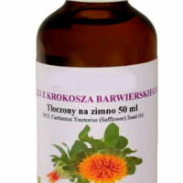 Olej z Krokosza Bawiarskiego (szafranowy) Carthamus Tinctorius (Safflower) Oil Olej krokoszowy, zwany również olejem szafranowym otrzymywany jest z nasion krokosza barwierskiego, rośliny, która wyglądem przypomina oset, ale należy do tej samej rodziny co słonecznik. Człowiek wykorzystywał tą roślinę od tysięcy lat, kwiaty służyły do wyrobu barwników, natomiast z nasion wyrabiano olej. W starożytnym Egipcie prawo do uprawy krokosza miał jedynie faraon. Skład Olej z krokosza jest szczególnym olejem, bowiem spośród olei zawiera największe stężenie kwasu linolowego, oraz dużą dawkę witaminy E (ok. 34%). Zastosowanie wewnętrzne oleju krokoszowego: przy wysokim cholesterolu, miażdżycy, Zastosowanie zewnętrzne: do masażu, do pielęgnacji cery dojrzałej, na zmarszczki, na wypryski, na cerę trądzikową, na zaczerwienie skóry. do pielęgnacji włosów, Olej krokoszowy charakteryzuje się lekką konsystencją, szybko się wchłania, nie zatyka porów. Odżywczo jest podobny do oliwy z oliwek, z tą różnicą, że ma bardzo dużą zawartość tłuszczów jednonienasyconych, prawie 75%. Może być stosowany samodzielnie bezpośrednio na skórę i włosy. Może być dodawany również jako składnik aktywny do innych produktów, zaleca się dodatek 3 – 10%.