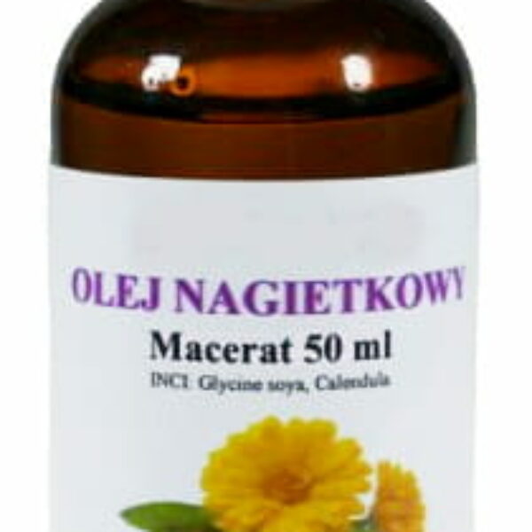 Macerat nagietkowy 100ml INCI: Glycine Soya, Calendula Macerat z nagietka to bogate źródło karotenu, saponin triterpenowych, dzięki czemu ma działanie bakteriobójcze, chroni skórę przed stanami zapalnymi. Idealnie nadaje się do masażu, olejowania przesuszonych włosów. Macerat z nagietka nawilża, zmniejsza zaczerwienienia i stany zapalne skóry. Macerat można stosować do masażu ciała, olejowania suchych włosów, jak również zastosować jako półprodukt do tworzenia własnych kosmetyków tj. kremu, maści leczniczych. Stosować na skórę podrażnioną, szorstka i pękającą. Olej ma działanie nawilżające, zmiękczające i przeciwzapalne. Ponadto zmniejsza zaczerwienia, podrażnienia słoneczne, drobne oparzenia, zmniejsza stłuczenia, liszaje, wypryski, łojotok, stany zapalne, plamy na skórze.Macerat można stosować zewnętrznie do przemywania i oczyszczania skóry zdrowej i chorej. Więcej o maceracie z nagietka znajdziesz TUTAJ