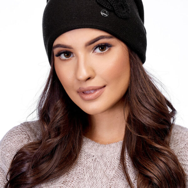 - z przodu czapki ozdobna aplikacja