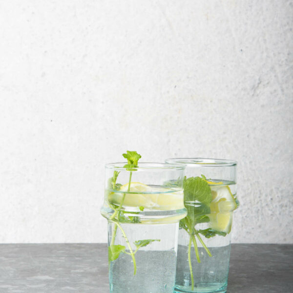 Szklanka ręcznie wyrabiana z dmuchanego szkła z recyklingu powstaje w marokańskiej fabryce Verre Beldi.Wymiary: 7 x 11,5 cmPojemność: 300mlProdukty marki Urban Nature Culture łączą w sobie wpływy i surowce z całego świata, w tym drewno mango, ceramikę, jutę, bambus, szkło z recyklingu, odpady bawełniane oraz drewno Bofofee z Etiopii.W kolekcji UNC znajdują się rzeczy, które przekazują cząstkę zasłyszanych w podróżny opowieść, odnalezionych a dawno zaginionych skarbów z odległych rejonów świata, małych wiosek czy kosmopolitycznych olbrzymich miast.