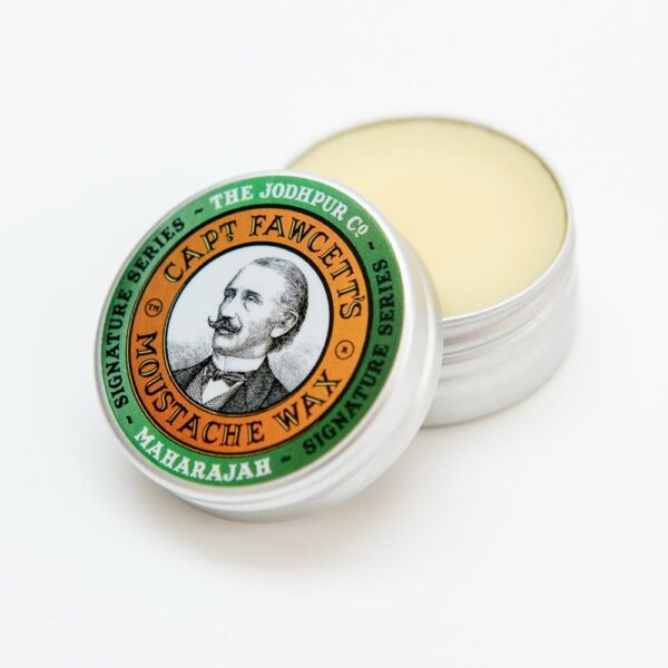 Współpraca kapitana Fawcetta z The Jodhpur Company zaowocowała powstaniem najwybitniejszej nowej serii Signature: Maharajah!Aromatyczne balsamiczne powietrze, pachnące aromatycznym dymem i miażdżeniem jasnych płatków wyczarowujących ciepło zaczarowanych indyjskich nocy, mistrz blendera Kapitana utkał mocną różę z pieprznymi przyprawami, bogatym piżmem, cedrem i skórą z olśniewającymi cytrusowymi nutami głowy; majestatyczne przywołanie starożytnej mocy w najbardziej eleganckim zapachu, który całkowicie pasuje do współczesnego dżentelmena.Dostarczany w aluminiowej puszce z zakrętką.Składniki: wosk pszczeli – głęboko nawilża włoski, chroni je przed szkodliwym wpływem czynników środowiskowych, ułatwia układanie, a także ma działanie regenerujące i wygładzające – sprawia, że włoski wyglądają zdrowo, schludnie i elegancko,parafinakompozycja zapachowa.Polecany dla: wąsaczy, którym zależy na perfekcyjnym wyglądzie zarostu i przyjemnym, męskim zapachu stosowanych produktów.Sposób użycia: zewnętrzną częścią paznokcia wyjąć z opakowania odrobinę wosku, a następnie rozgrzać kosmetyk między palcami - kciukiem i palcem wskazującym. Nakładać ruchem na zewnątrz i w górę, można zakończyć podkręcając końcówkę wąsów. Pojemność: 15 mlDodatkowe informacje: wosk idealnie mieści się w kieszeni – możesz go zawsze mieć przy sobie!