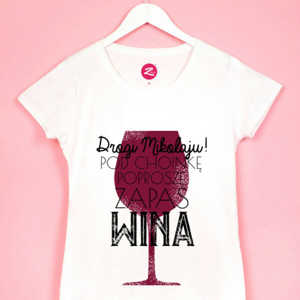 Koszulka w kolorze czystej bieli z nadrukiem wykonanym metodą cyfrową.