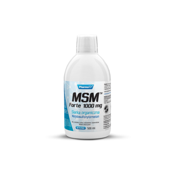 MSM forte 1000mg 500ml Pharmovit SIarka organiczna - metylosulfonylometan Zalecana porcja: Spożywać 15ml dziennie w trakcie posiłku, miarka dołączona do opakowania.