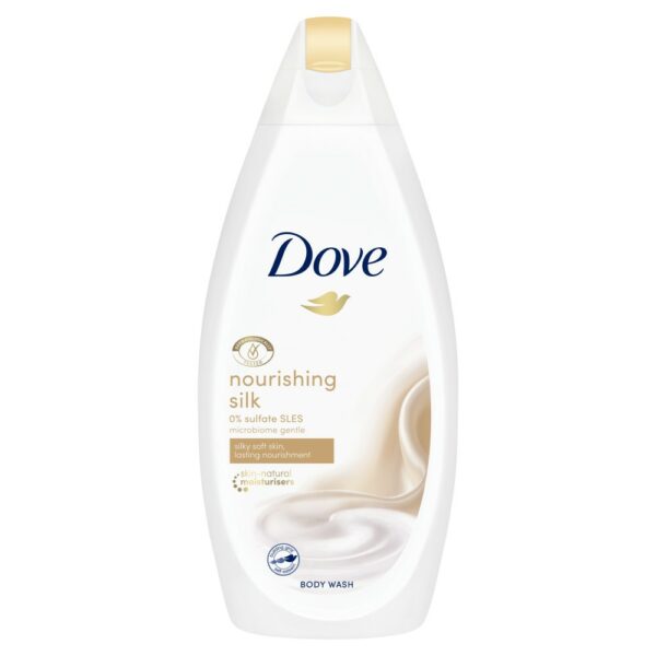 Dove Nourishing Silk Żel pod prysznic:Zawiera ¼ kremu nawilżającego.Bardziej miękka i gładka skóra już po pierwszym prysznicu.Głęboko odżywia powierzchniowe warstwy naskórka.100% łagodnych substancji myjących.Łagodna, kremowa formuła delikatna dla Twojej skóry.Pełna blasku, jedwabiście gładka skóra.