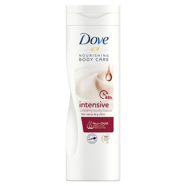 Dove intensywnie odżywiający balsam do ciała do bardzo suchej skóry zawiera wysoce skuteczną kremową formułę, łączy bogaty krem oraz odżywiający skórę olejek, nawilżając bardzo suchą skórę by stała się miękka i gładka. Cechy i właściwości balsamu do ciała Dove Intensive Body Lotion.Cechy i właściwości balsamu do ciała Dove Intensive Body Lotion:kremowa formuła,intensywnie odżywia,nawilża suchą skórę,sprawia, że skóra staje się miękka i gładka