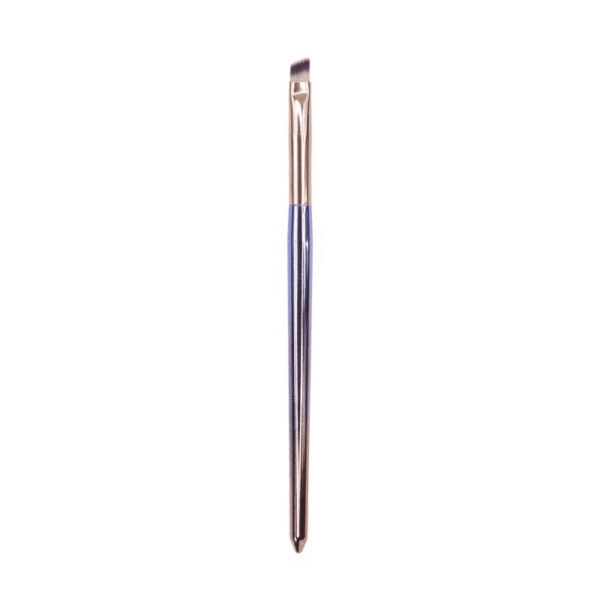 Niepowtarzalna kolejkcja 5 pędzli do makijażu LAA BRUSH. Chromowa seria nawiązuje do kolorystyki nieba podczas zachodu słońca.Pędzelek do modelowania i stylizacji brwi.Posiada skośnie ścięte włosie, które pozwala na wykonanie starannej kreski przy linii rzęs oraz na na wykonturowanie każdego rodzaju brwi.Włosie syntetyczne.Pędzle serii LAA BRUSH są unikatową kolekcją, która zwraca uwagę nie tylko swoim niepowtarzalnym designem, ale i jakością wykonania.Wymiar: długość 16,5 cm.Sposób użycia: nanieś na pędzel niewielką ilość kosmetyku (pomadę do brwi, cień do powiek). Delikatnie nakreśl cienką, dolną granicę linii brwi. Wypełnij kosmetykiem niepomalowane miejsca zaczynając od nakreślonej linii, ukośnie ku górze. Chcąc uzyskać jak najbardziej naturalny wygląd wyczesz nadmiar produktu z przedniej części brwi.Pielęgnacja pędzli do makijażu: Pędzel należy umyć ciepłą wodą z dodatkiem żelu z olejkiem lub specjalnym preparatem do mycia akcesoriów kosmetycznych. Po wypłukaniu kosmetyku myjącego należy delikatnie odcisnąć włosie ręcznikiem papierowym. Pędzel powinien być suszony w pozycji poziomej lub pionowej (miotełką skierowaną w dół). Należy unikać moczenie rączki (trzonka) pędzla.