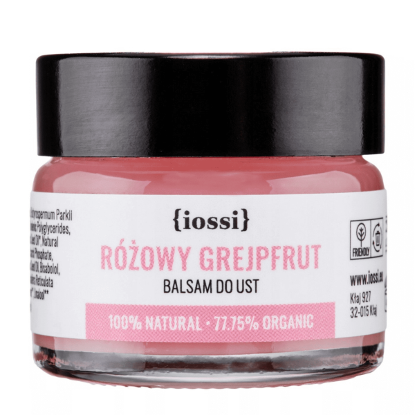 Iossi Różowy Grejpfrut Balsam Do UstIossi - Różowy Grejpfrut - Balsam do Ust - produkt doskonale pielęgnuje i wspomaga regenerację spierzchniętych ust. Zawarty w nim olej z pestek moreli pozostawia na ustach warstwę ochronną i odpowiada za długotrwały efekt nawilżenia. Bogate w witaminy masło shea zapewnia uczucie gładkości, miękkości i odżywienia. Olejek grejpfrutowy regeneruje i wygładza skórę ust, a bogaty w antyoksydanty wyciąg z korzenia lukrecji zmniejsza uczucie suchości i chroni przed wpływem czynników zewnętrznych takich jak: wiatr, mróz czy słońce. Zawarty ekstrakt z korzenia batata delikatnie podkreśla naturalny odcień warg. Po nałożeniu balsam daje uczucie ukojenia, intensywnego odżywienia i pomaga w odbudowie naskórka. Produkt przetestowany dermatologicznie, w 100% naturalny.Produkt zawiera: olej z pestek moreli - natłuszcza i wygładza skórę ust,wosk pszczeli - bogaty w witaminy i mikroelementy, działa odżywiająco,masło shea - wygładza i natłuszcza oraz przyspiesza gojenie i łagodzi podrażnienia,olejek ze skórki grejpfruta - regeneruje i wygładza skórę, nadaje świeży zapach,ekstrakt z korzenia batata - podkreśla naturalny kolor warg.Działanie produktu:nawilża, wygładza usta, regeneruje.Rodzaje skór oraz defekty kosmetyczne, dla których ten produkt może być pomocny: suche i spierzchnięte usta. Sposób aplikacji: Nałóż niewielką ilość balsamu na usta. Stosuj w ciągu dnia, jako pielęgnującą bazę pod szminkę lub jako satynowy błyszczyk po nałożeniu makijażu.Pojemność: 15ML