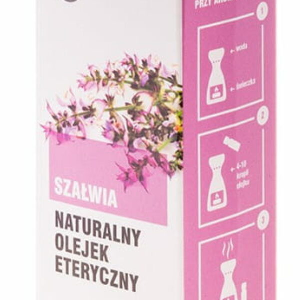 Naturalny olejek eteryczny Szałwia 12ml Naturalne Aromaty Olejek z szałwii łagodzi objawy związane z menopauzą, redukując jej skutki uboczne takie jak uderzenia gorąca. Szczególnie skuteczny na skurcze trawienne oraz jelitowe, przykurcze oraz skurcze mięśniowe. Działa skutecznie na wszelkiego rodzaju infekcje , w szczególności na grzybicę skóry. Zwalcza stres oraz uczucie lęku i zaburzenia snu