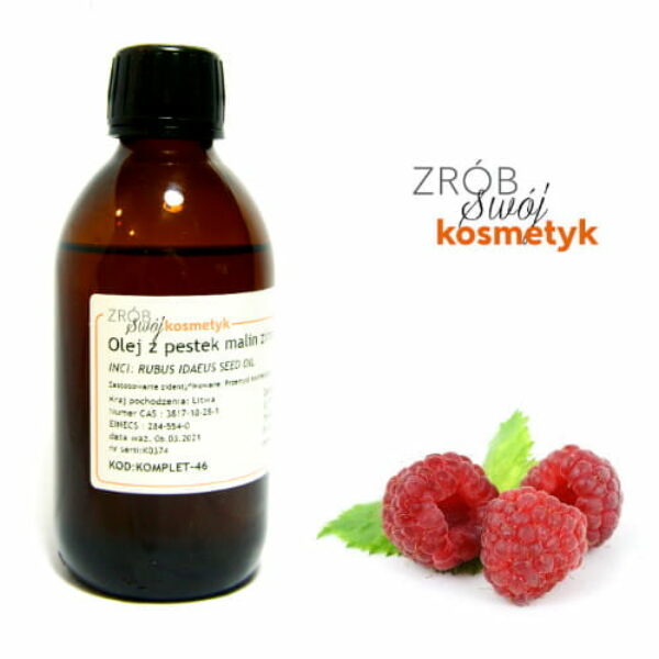 Olej z pestek Malin zimnotłoczony INCI: Rubus Idaeus (Raspberry) Seed Oil Właściwości oleju z pestek malin szybko się wchłania nie pozastawiając tłustego filmu. przeciwutleniacz, ma działanie przeciwzapalne olej ma działanie konserwujące zaleca się go stosować w mieszankach z innymi olejami. zawiera wysoki stężenie oleju witaminy E, karenotoidów (witaminy A). działanie przeciwalergiczne, przeciwzapalne, przyśpiesza gojenie ran, oparzeń, odmrożeń. Hamuje zmiany zwyrodnieniowe i rogowacenie gruczołów łojowych, zapobiega zaczopowaniu ujść gruczołów łojowych, działa przeciwzaskórnikowo. Wspomaga wytwarzanie kolagenu i elastyny, zwiększając elastyczność i jędrność skóry oraz redukując zmarszczki. naturalny filtr SPF 28 - 5m, pomocny jest w zapaleniu dziąseł, wysypce, wyprysku oraz różnorodnych defektach skórnych. poprawia miękkość i gładkość skóry, Zwiększa ochronę antyoksydacyjną skóry, przyczyniając się do poprawy jej wyglądu. Cera Szczególnie nadaje się do skóry suchej, starzejącej się, z problemami, do olejków do masażu, ze względu na głęboką penetrację i ochronę. Postać Olej złoty, ciemno żółty o zapachu i smaku lekko orzechowym. Koncentracja w kosmetyku: 10-20% Skład kwasy tłuszczowe omega-3 (ALA) i omega-6 (LA, kwas elagowy (dimer kwasu galusowego), zawiera około 45 – 50% kwasów tłuszczowych omega-6 i 25-30% kwasów omega-3 Olej z nasion malin zawiera około 45 – 50% kwasów tłuszczowych omega-6 i 25-30% kwasów omega-3, co jest idealną kombinacją dla skóry. Jest silnym wymiataczem wolnych rodników, ze względu na wysoką zawartość flawonoidów, tokoferoli i karetonoidów. Zawarte w oleju kwasy tłuszczowe omega-3 (ALA) i omega-6 (LA)pozwalają zmniejszyć skutki stresu oksydacyjnego w skórze. Kwasy tłuszczowe ALA i LA charakteryzują się szczególnie korzystnym oddziaływaniem na skórę. Olej z pestek malin zawiera kwas elagowy (dimer kwasu galusowego) w ilości od 60 do 320 mikrogramów/g oleju. Związek ten należący do grupy polifenoli posiada właściwości przeciwrakowe, zabezpiecza przed mutacją genów a także jest środkiem przeciwbakteryjnym i przeciwwirusowym. Olej z pestek malin znajduje zastosowanie w produktach Anty-aging, w preparatach po opalaniu, po mikro-uszkodzeniach skóry (peelingi, woskowanie). Olej ten jest znany ze względu na swoje właściwości przeciwzapalne, skutecznie chroni przed zapaleniem dziąseł, pokrzywką, egzemą i innymi schorzeniami skóry. Liczba zmydlania 106 - 142 mg NaOH / g oleju Przechowywanie: Po otwarciu zalecamy przechowywanie oleju w lodówce.