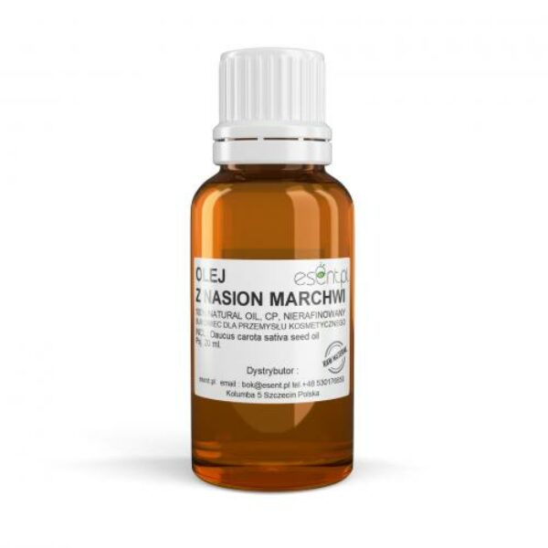 Surowiec do przemysłu chemicznego, kosmetycznego : Olej z nasion marchwi tłoczony na zimno, nierafinowany.INCL : Daucus carota sativa seed oilNumer CAS 8015-88-1 / 84929-61-3Numer EINECS - / 284-545-1 Olej wytłaczany na zimno z nasion marchwi Daucus carota sativa. Zawiera w swym składzie znaczne ilości naturalnych witamin z grupy A,B,C,E i F, które regulują metabolizm w komórkach skóry , chronią przed wolnym rodnikami i innymi niekorzystnymi wpływami środowiskowymi. Naturalne fitosterole zawarte w oleju działają ujędrniająco i wygładzają skórę, chronią ją przed utratą naturalnej wilgotności. Olej (dzięki wysokiej zawartości kwasu Omega 9 ) jest olejem lekkim, dobrze przenikającym do głębszych warstw naskórka i skóry właściwej, szybko się wchłania i może być wykorzystany w formułach jako czynnik „transportujący” inne składniki aktywne w głąb skóry. W przemyśle kosmetycznym olej używany od niedawna i dość...ostrożnie, a szkoda gdyż jego właściwości znakomicie predysponują do używania w formułach przeciwzmarszczkowych, ochronnych, a nawet w kosmetykach dedykowanych do szczególnie wrażliwych partii skóry np : pod oczy. Zalecane stężenie w formułach kosmetycznych to 10-100% Warunki przechowywania , ciemne pomieszczenia temperatura optymalna 15-20 oC