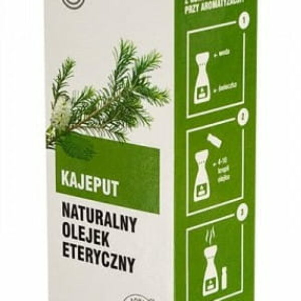 Naturalny olejek z kajeputowy stosowany w pielęgnacji włosów, zębów, skóry trądzikowej jak i łuszczycy. Posiada silne działanie antyseptyczne, przeciwwirusowe i przeciwbakteryjne. Charakteryzuje się świeżym zapachem i działa chłodząco, ożywczo i stymulująco. Przydatny także w przypadku psychicznego wyczerpania. KAJEPUT – Naturalny olejek eteryczny Łacińska nazwa: Melaleuca Leucadendron Cajuputi leaf oil Destylowana część roślin: Gałązki Pochodzenie: Australia DOBRA KOMPOZYCJA Z OLEJKIEM: Eukaliptusowym, lawendowym, rozmarynowym, sosnowym, cytrynowym, tymiankowym, drzewem herbacianym, bergamotowym, miętowym i sosnowym.