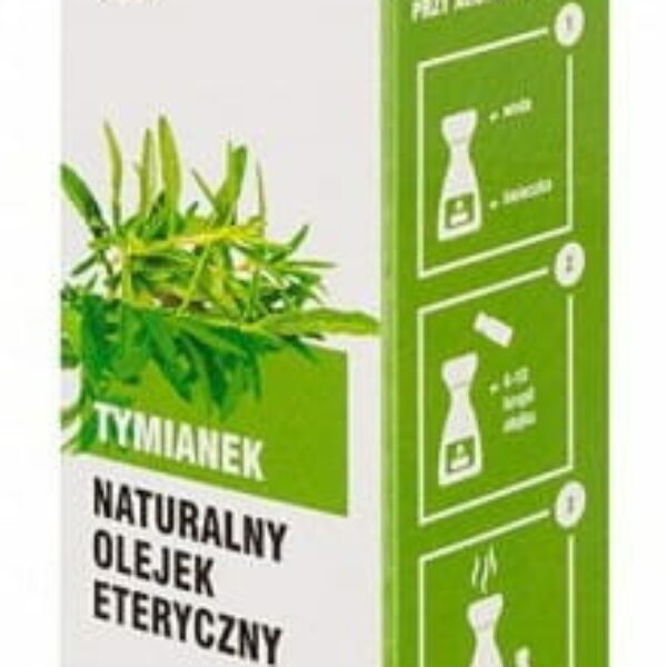 Olejek ma bardzo silne własności antyseptyczne. Stosuje się go również ze względu na jego działanie wykrztuśne. Pobudza ruchy rzęsek wyścielających drogi oddechowe i nasila wydzielanie śluzu. Podaje się go głównie w przypadku kaszlu i w nieżycie dróg oddechowych. Działa także przeciwbólowo przy reumatyzmie i artretyzmie. Stymuluje krążenie i podnosi ciśnienie krwi. Na skórę działa odkażająco, niszczy bakterie i grzyby pasożytnicze. Zwiększa odporność organizmu na infekcje wszelkiego rodzaju. Łacińska nazwa: Thymus zygis (Loefl.) L. Destylowana część roślin: Wierzchołki kwiatów Pochodzenie: Hiszpania DZIAŁANIE Antyseptyczne, łagodzi infekcje górnych dróg oddechowych oraz objawy przeziębienia, kaszel, katar. SPOSÓB UŻYCIA masaż w własnym zakresie dodatek do olejów bazowych płukanki - bóle gardła, zapalenia jamy ustnej kąpiel inhalacyjna przy przeziębieniu i grypie inhalacje parówka twarzy naturalne aromatyzowanie powietrza DOBRA KOMPOZYCJA Z OLEJKIEM Bergamotowym, cytrynowym, z drzewa herbacianego, eukaliptusowym, lawendowym, melisowym, sosnowym, rozmarynowym. PRZECIWWSKAZANIA Nie stosować przy nadciśnieniu.Do użytku zewnętrznego. PRZECHOWYWANIE Przechowywać w szczelnie zamkniętej butelce z ciemnego szkła w temperaturze pokojowej w miejscu niedostępnym dla dzieci.