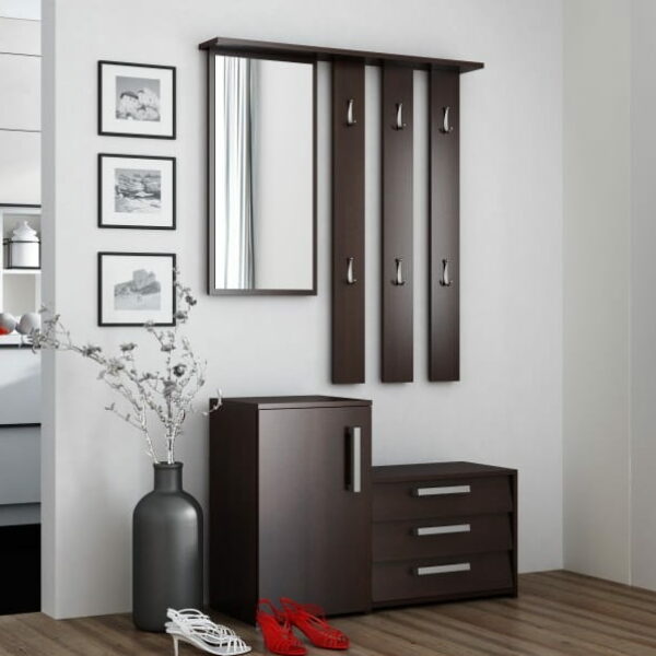 Komplet do przedpokoju wenge - wieszak, lustro, szafka