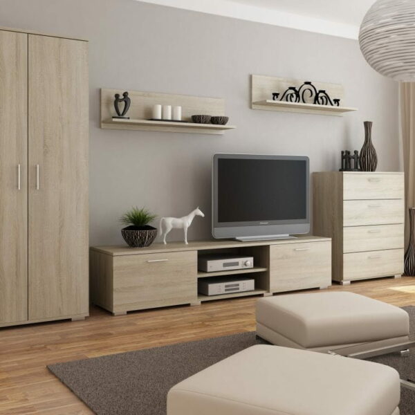 Meblościanka z szafką, komodą i RTV dąb sonoma