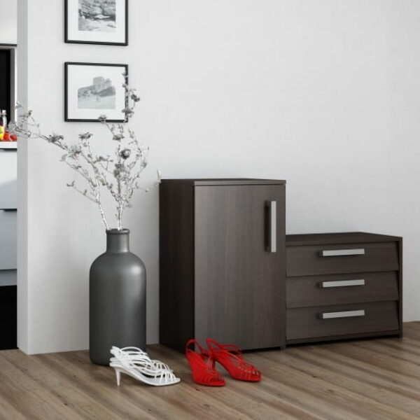 Marzysz o uporządkowanej garderobie, o poukładanych butach szczególnie w przedpokoju? Doskonale w tej roli sprawdzi się nasza szafka na buty Gerda. Nowoczesna i komfortowa szafka sprawi, że Twój przedpokój stanie się funkcjonalny i wygodny. Staranna jakość wykonania, elegancki wygląd i oryginalny kolor, sprawiają że szafka będzie pasować do każdego przedpokoju. Uchylne drzwiczki zapewniają funkcjonalność szafki. Nasza szafka na buty wykonana jest z płyty laminowanej odpornej na ścieranie. Widoczne krawędzie zostały oklejone obrzeżem ABS. Szafki z serii Gerda mają nowy typ okuć oraz gładkie boki bez zaślepek.Szafka na buty posiada wygodne uchwyty do otwierana uchylnych drzwiczek i pomieści nawet 9 par butów! Jest to bardzo praktyczny mebel, który pomoże Ci w końcu zapanować nad porządkiem w przedpokoju. Jest to produkt polski, charakteryzujący się staranną jakością wykonania, więc na pewno posłuży Ci przez kilkanaście lat. WYMIARY: Wysokość - 68 cm Szerokość - 99 cm Głębokość - 33-36 cm Kolor: WENGE MATERIAŁ: • Korpus i fronty– płyta laminowana o grubości 16mm. • Obrzeża – wykończone tworzywem PCV (charakteryzującym się dużą wytrzymałością mechaniczną i chemiczną)