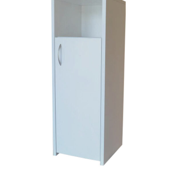 wysokość: 85 cmszerokość: 30 cmgłębokość: 30 cm Szafki wykonane z płyty laminowanej 16 mm, obrzeża oklejone PCV - odpornym na wilgoć Metalowy uchwyt w kolorze srebrnym Plecy wykonane z płyty HDF 3mm