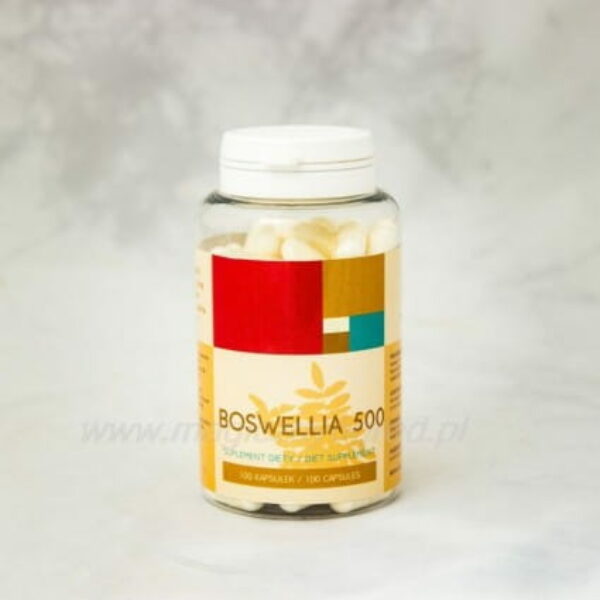 Boswellia 500 100 kapsułek Boswellia serrata Kadzidłowiec Kadzidłowiec ekstrakt kapsułki zawierają ekstrakt z żywicy Boswellia serrata (Olibanum, Indian frankincense) standaryzowanego na zawartość 60% kwasów bosweliowych. SUPLEMENT DIETY SKŁADNIKI 1 kapsułka zawiera 500mg ekstraktu z żywicy Boswellia serrata standaryzowanego na zawartość 60% kwasów boswelliowych. Opakowanie zawiera 100 kapsułek. Żywica Boswellia zawiera m.in. pentacykliczne kwasy triterpenowe –beta-bosweliowy, keto-beta-bosweliowy i acetylo-keto-beta-bosweliowy (AKBA). SPOSÓB UŻYCIA Jedna kapsułka do trzech razy na dobę. Suplementy diety nie zastąpią zróżnicowanej diety i zdrowego trybu życia. INTERAKCJE I DZIAŁANIA NIEPOŻĄDANE Kadzidłowiec jest uznawany za bezpieczny i dobrze tolerowany przez ludzi.