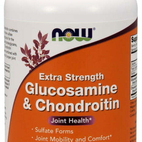 Glukozamina i chondroityna Extra Strength - 240 tablets Nowfoods Formy siarczanowe Mobilność i komfort * NOW Extra Strength Glucosamine & Chondroitin łączy w swoich formach siarczanowych dwa dobrze znane składniki wspierające stawy. * Glukozamina jest podstawowym budulcem do tworzenia glikozaminoglikanów (GAG) i proteoglikanów, głównych składników tkanki chrzęstnej. * Siarczan chondroityny jest glikozaminoglikan, który został w tym produkcie połączony z glukozaminą dla wsparcia prawidłowej ruchomości stawów i komfortu. * Ten produkt o zwiększonej mocy zawiera dwukrotnie więcej glukozaminy / chondroityny (750 mg / 600 mg na tabletkę) niż w naszym zwykłym produkcie o mocy (375 mg / 300 mg na kapsułkę). NOW Foods opracowało metodę testowania glukozaminy wybraną jako oficjalna standardowa metoda AOACI. W tym produkcie mogą wystąpić naturalne różnice w kolorze. Dodatkowe informacje Wielkość porcji: 2 tabletki Porcji w opakowaniu: 120 Kwota na porcję % Dzienna wartość * Procent dziennych wartości oparty na diecie 2000 kalorii.† Nie ustalono dziennej wartości. Kalorie 10 Węglowodany ogółem 2 g <1% * Sód 110 mg 5% Siarczan glukozaminy (z kompleksu siarczanu glukozaminy i potasu) 1,5 g (1500 mg) † Siarczan sodu chondroityny (z chrząstki wołowej) 1,2 g (1200 mg) † Inne składniki: celuloza, kwas stearynowy (źródło roślinne), stearynian magnezu (źródło roślinne), krzemionka i powłoka roślinna. Zawiera skorupiaki (kraby, krewetki, homary, raki). Nie wyprodukowano ze składników pszenicy, glutenu, soi, kukurydzy, mleka, jaj, ryb ani orzechów drzewnych. Wyprodukowano w zakładzie GMP, który przetwarza inne składniki zawierające te alergeny. Przyjmować 2 tabletki dziennie. Ze względu na rozmiar tabletki, zażywaj 8 oz. wody lub innego napoju.