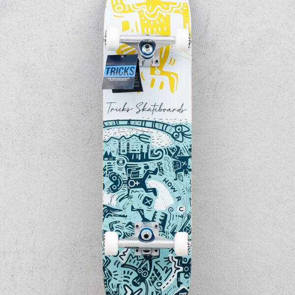Deskorolka która idealnie nadaje się aby rozpocząć swoją przygodę ze skateboardingiem. • Deck wykonany z 7 warstw wysokiej jakości drewna • Kółka o twardości 101A • Traki: Tricks • Łożyska: ABEC 5 • Fabrycznie naklejony grip