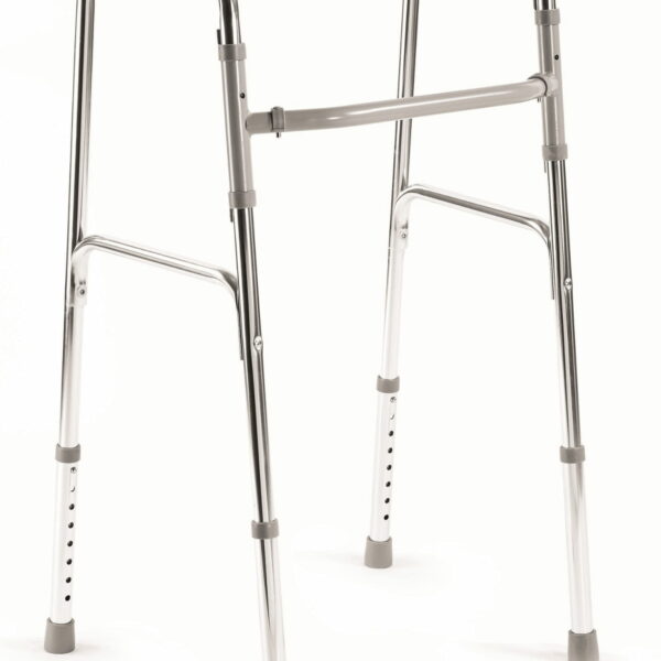Balkonik dwufunkcyjny (krocząco - statyczny) Model: FS 913 L Balkonik krocząco-statyczny doskonale sprawdzi się jako wsparcie i pomoc dla osób, które przeszły interwencję chirurgiczną kończyn dolnych lub bioder, mających obniżoną sprawność ruchową, potrzebujących stabilnego podparcia i równowagi podczas chodzenia. Zastosowanie balkonika wpływa korzystnie na powrót do aktywności osób ze schorzeniami kończyn dolnych, mających problemy z poruszaniem się lub utrzymaniem pozycji pionowej. Polecany jest również seniorom, jako pomoc w codziennej aktywności ruchowej, utrzymaniu równowagi, poprawy komfortu poruszania się i ochrony przed ewentualnym upadkiem. wzmocniona aluminiowa rama; dwie funkcje: statyczna i krocząca; szerokie pole podparcia; stabilny i długi zakres kroczenia; miękkie piankowe uchwyty; regulowana wysokość nóżek; funkcja składania do transportu i przechowywania; nóżki zakończone gumowymi nasadkami antypoślizgowymi. Dane techniczne Szerokość całkowita: 46 cm Szerokość wewnętrzna: 44 cm Głębokość całkowita: 47 cm Wysokość całkowita: 78 - 96 cm Waga: 2,4 kg Maksymalne obciążenie: 100 kg Kolor ramy: miedziany lub srebrny +/- 0,5 - 1 cm Produkt medyczny, wpisany do Rejestru Produktów Medycznych