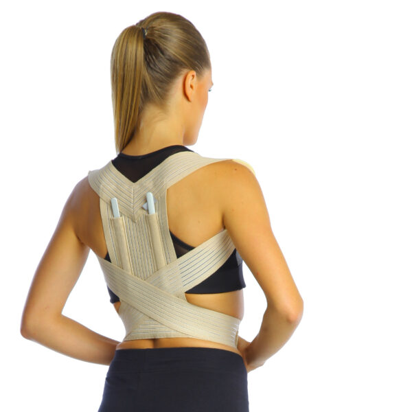 Prostotrzymacz korektor postawy MP-557 Prostotrzymacz- korektor postawy Armoline MP-557 zapewnia odpowiednie unieruchomienie obojczyków oraz zapobiega ich przemieszczaniu się. Dzięki anatomicznej konstrukcji zapewnia wygodę użytkowania. cenny przy aktywnym, codziennym treningu wspomaga prowadzenie terapii przy plecach okrągłych i zapadniętej klatce piersiowej - kifoza wspomaga mięśnie grzbietu cienki , przewiewny, elastyczny materiał przylega do ciała i nie odznacza się pod ubraniem siła odciągu barków regulowana pasami zapinanymi na rzepy dwie elastyczne stalki po obu stronach kręgosłupa dodatkowo wymuszają prawidłową postawę ściągalne podkładki z gąbki chronią przed wpijaniem się pasów elastyczne szelki należy przeciągnąć pod pachami i skrzyżować na plecach a następnie zapiąć na wysokości brzucha Zalecany przy: urazach obojczyka niewymagających interwencji chirurgicznej u osób dorosłych w dyskopatii odcinka piersiowego kręgosłupa zespołach bólowych odcinka piersiowego kręgosłupa Kolor: beż lub czarny ROZMIAR S M L XL XXL 3XL OBWÓD POD KLATKĄ PIERSIOWĄ 80/90 90/100 100/110 110/120 120/130 130/140 OBWÓD W TALII 70/80 80/90 90/100 100/110 110/120 120/130 Skład: bawełna 40%, nylon 15%, wiskoza 15%, elastan 1% Warunki przechowywania i konserwacji: Przechowywać w suchym i przewiewnym miejscu z dala od promieniowania słonecznego Prać w delikatnym detergencie