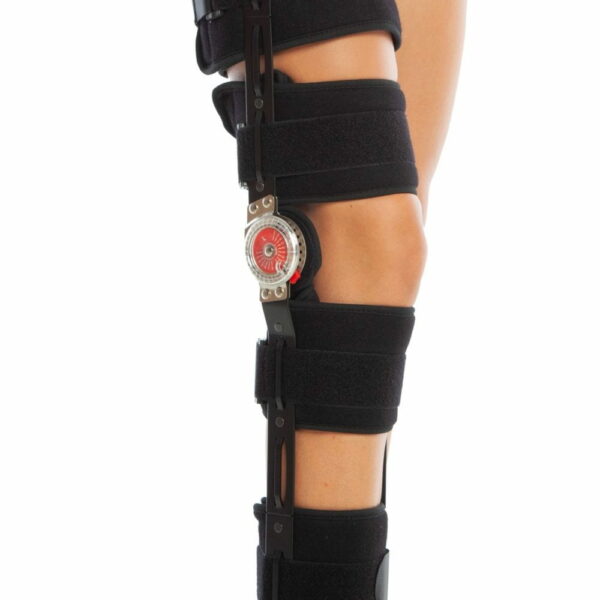 Orteza kolana z regulowanym kątem zgięcia Kod: MP-723 Orteza kolana z regulowanym kątem zgięcia, została zaprojektowana w celu pooperacyjnego unieruchomienia kolana oraz wprowadzenia stopniowej mobilności dzięki zastosowaniu regulacji kąta zgięcia i wyprostu. Stosowanie ortezy przyczynia się do prawidłowego gojenia kolana i zminimalizowania czasu powrotu pacjenta do aktywności ruchowej . Regulacja kąta zgięcia i wyprostu w kolanie może być stopniowana w zakresie co 15°, co ułatwia skuteczną rehabilitację. Charakterystyka produktu: - zakres regulacji ruchu zawiasu: zgięcie (od 0° do 120°) , wyprost (od 0° do 90°) - klawisz szybkiego blokowania umożliwia sterowanie ruchem zawiasu co 15° - system blokady zegara zapewnia bezpieczeństwo użytkowania - łatwe zakładanie ortezy dzięki klamrom i zapięciu na rzepy - lekki oddychający materiał pasów mocujących - uniwersalny rozmiar , pasuje na lewą lub prawą nogę - możliwość regulacji długości szyn poprzez oderwanie górnego i dolnego odcinka szyny - zakres długości szyn - 45cm lub 65cm Zastosowanie ortezy: - może byc stosowana w ostrym stadium po urazie, po operacji jak również w późniejszym etapie w trakcie rehabilitacji - stabilizuje więzadła boczne i krzyżowe - zapobiega niepożądanym ruchom i nadmiernej szybkości ruchu - reguluje kąt zgięcia i wyprostu - redukuje napięcia mięśniowe, zmniejszając uczucie bólu - zapobiega przeprostowi kolana - chroni niestabilne kolano przed urazami bocznymi - bolesne zapalenie kości i stawów, warunki pooperacyjne: MCL - więzadło poboczne piszczelowe LCL - więzadło poboczne strzałkowe ACL - więzadło krzyżowe przednie PCL - więzadło krzyżowe tylne Złamania nasady kości piszczelowej Rozmiar: Uniwersalny - strona lewa/prawa Wszystkie produkty posiadają wpis do urzędu rejestracji wyrobów medycznych i oznaczenie CE