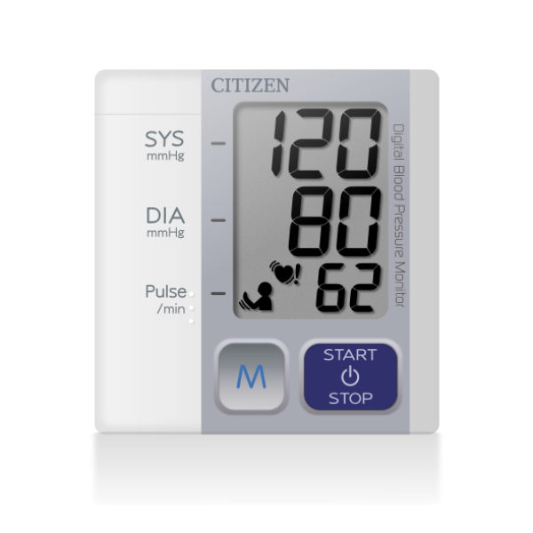 CIŚNIENIOMIERZ AUTOMATYCZNY NADGARSTKOWY Model CH-657 - pomiar przy arytmii W pełni automatyczny aparat do mierzenia ciśnienia krwi z pamięcią 90 pomiarów oraz ze średnią ostatnich 3 pomiarów. Bardzo precyzyjny ciśnieniomierz wykonany według japońskiej technologii "micro-human-tech" Citizen. Cechą, która rzuca się na pierwszy rzut oka jest nowoczesny design i kompaktowe rozmiary urządzenia - grubość zaledwie 15mm! Miękki mankiet, który dodatkowo redukuje gabarytu urządzenia Ciśnieniomierz dokonuje pomiaru przy arytmii oraz posiada czujnik ruchu ciała, aby wyeliminować ewentualne błędy pomiaru. Elegancki ciśnieniomierz, wykonany z najwyższej jakości materiałów z dbałością o każdy szczegół. Pomocny w codziennym kontrolowaniu poziomu ciśnienia krwi w domu czy też w miejscu pracy. Nie zajmuje wiele miejsca, z łatwością można go pomieścić w torebce lub kieszeni. Wskaźniki wyświetlacza: Duży, czytelny wyświetlacz ciekłokrystaliczny Bardzo prosta obsługa Ciśnieniomierz jest bardzo prosty w obsłudze. Wystarczy nałożyć, nacisnąć jeden przycisk i po chwili otrzymujemy dokładny odczyt. W przypadku, gdy zapomnimy wyłączyć ciśnieniomierz, urządzenie automatycznie się wyłączy po trzech minutach w celu oszczędności energii. Wykrywanie arytmii W zestawie znajduje się poręczne etui, które pomaga chronić urządzenie przed kurzem oraz może posłużyć jako podpórka do ręki podczas pomiaru. Tabela ilustrująca poziomy ciśnienia Tabela ilustrująca poziomy ciśnienia krwi według WHO - Światowej Organizacji zdrowia: Regularny pomiar ciśnienia pomaga w monitorowaniu swojego stanu zdrowia. Parametry techniczne: Zakres obwodu nadgarstka: 13.5 do 21.5 cm Zakres mierzonego ciśnienia: 0 do 280 mmHg Puls: 40 do 180 uderzeń/min Zasilanie 2 baterie AAA (LR03) Żywotność baterii ok. 400 pomiarów Pamięć: Do 90 pomiarów Wymiary: 69x70x15 mm Waga: Ok. 86g bez baterii Ciśnieniomierz także dostępny w czarnym kolorze! - seria limitowana