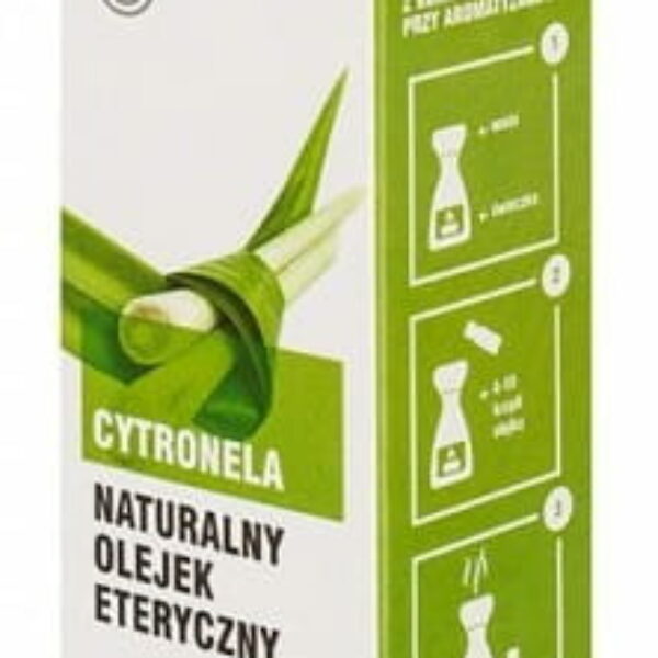 Naturalny olejek cytronelowy znany jest z swoich właściwości odstraszających komary, meszki i kleszcze. Posiada też działanie odświeżające i oczyszczające powietrze, grzybobójcze, antybakteryjne oraz przeciw zapalne. Pomocny olejek w depresji. Łagodzi ukąszenia owadów, stosować bezpośrednio na ukąszone miejsca, aby zmniejszyć swędzenie i zaczerwienienie. Znajduję szerokie zastosowanie w produkcji mydeł, perfumerii, kosmetyków oraz przemyśle zapachowym na całym świecie. SPOSÓB UŻYCIA Masaż ciała – wymieszany z olejem bazowym (np. olej ze słodkich migdałów, z pestek moreli, olej jojoba) działa lekko rozgrzewająco, łagodzi napięcia nerwowe, bóle mięśni i stawów. Masaż skroni – dodaj 2-3 krople na jedną pompkę oleju Etja (ok. 0,5 ml) i delikatnie opuszkami palców masuj skronie. Pomocny przy bólach głowy i migrenie. Inhalacje – podczas menopauzy, napięć nerwowych, depresji, apatii Aromatyzowanie pomieszczeń (kominek zapachowy, dyfuzor, nawilżacze, mgiełka zapachowa w spray) – nadaje przyjemny, lekko słodki, cytrusowy zapach. Działa uspokajająco, pomocny przy bólach głowy i migrenie Odprężająca kąpiel – kilka kropli olejku dodanych do wanny wypełnionej 1/3 ciepłej wody zmniejszy objawy depresji, pomoże przy stanach zapalnych skóry oraz egzemy Dodatek do kremów i kosmetyków przeznaczonych do cery tłustej i trądzikowej Może służyć jako składnik wyrafinowanych perfum własnej roboty oliwka na komary i kleszcze - dodaj kilka kropli olejku cytronellowego do bazy olejowej (do 35 kropli na 50 ml oleju bazowego). Smarować ciało w technice francuskiej ( zgięcia na łokciach, kolanach, nadgarstkach i za uszami) CYTRONELA– Naturalny olejek eteryczny Łacińska nazwa: Cymbopogon citratus Destylowana część roślin: z Liści i łodyg trawy Pochodzenie: Indonezja DOBRA KOMPOZYCJA Z OLEJKIEM CYTRONELLA Eukaliptusowy, cytrynowy, lemongrasowy, melisowy, grejpfrutowy, pomarańczowy, cedrowy PRZECIWWSKAZANIA Należy unikać kontaktu z oczami. Dla bezpieczeństwa używać zawsze w rozcieńczeniu na skórę! PRZECHOWYWANIE Przechowywać w szczelnie zamkniętej butelce z ciemnego szkła w temperaturze pokojowej w miejscu niedostępnym dla dzieci.