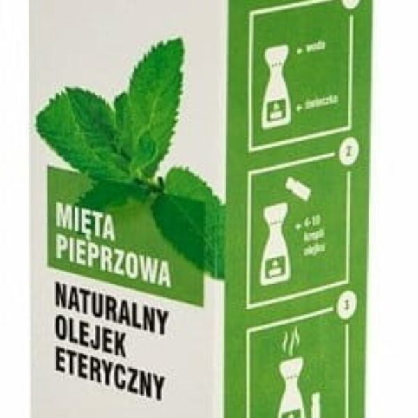 Olejek eteryczny z mięty pieprzowej to 100% naturalny produkt. Olejek ma bardzo szerokie zastosowanie - sprawdzi się w każdym domu. Gwarancja wysokiej jakości i niezapomnianych wrażeń zapachowych. Buteleczka z zakraplaczem pozwoli Ci na wygodne dozowanie olejku. Przykładowe zastosowanie i sposób użycia: Do aromatyzacji pomieszczenia przy pomocy kominka - do misy kominka wlej niewielką ilość wody. Następnie aplikuj 4-10 kropel olejku. W dolnej części umieść podgrzewacz typu tealight i zapal go. Pod wpływem ciepła olejek zacznie parować i uwalniać zapach. D inhalacji parowej - aplikować parę kropli olejku na szklankę lub miskę ciepłej wody i wdychać zapach pod przykryciem (np. ręcznikiem). Do masażu - 3-5 kropli wymieszać z jedną łyżką oleju nośnikowego np. migdałowego, czy kokosowego. Do kąpieli - 10-15 kropli aplikować pod strumieniem letniej wody. Na poduszkę, aby ułatwić zasypianie - skroplić róg poduszki niewielką ilością olejku. Dodać kilka kropli do proszku do prania lub skroplić olejkiem prane uprania. Wlać kilka kropli do wiadra z wodą i myj nią podłogę. Nasączyć gazik i wciągnąć na początku odkurzania, w celu aromatyzowania powietrza. Skroplić olejkiem wycieraczkę pod domem lub w samochodzie. Skroplić olejkiem wyschniętą choinkę zapachowa do auta.