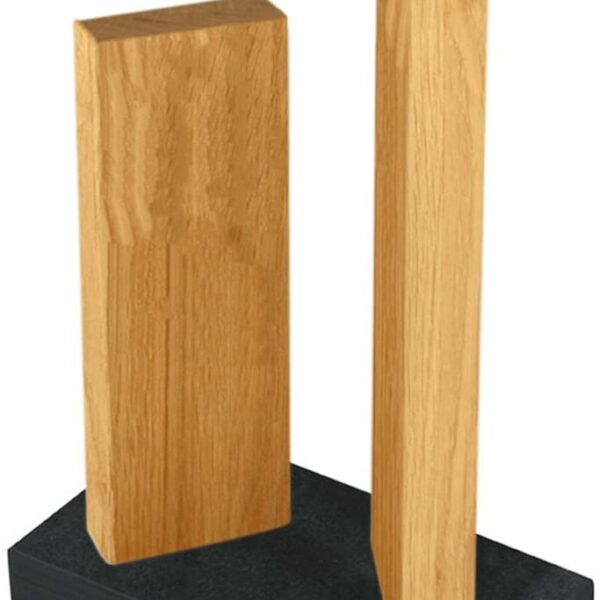 Stojak do przechowywania noży w oryginalnym, nietuzinkowym wydaniu. Stojak lub blok do noży to niewątpliwie jeden z najbardziej znanych i powszechnych sposobów przechowywania kuchennych noży. Zapewnia ochronę i organizację noży, ponadto pełni integralną część wyposażenia i wystroju kuchni. Marka Kai proponuje blok oparty na konstrukcji powstałej z połączenia dwóch naturalnych materiałów, jakimi są granit i drewno dębowe. Stojak do noży poza niecodziennym wyglądem jest także bardzo funkcjonalny. Granitowa podstawa zapewnia stabilność, a jej spód wyposażony jest antypoślizgowe elementy zabezpieczające kuchenny blat. Na podstawie umieszczone zostały drewniane belki wykonane z drewna dębowego, wewnątrz których znajdują się silne magnesy mogące utrzymać ostrze noży. Maksymalna szerokość ostrza to 6,5 cm, maksymalna długość ostrza to 27 cm. Na stojaku jednocześnie można przechowywać 4 noże. Japońska firma KAI to synonim wysokiej jakości, wyroby z logo tej marki w swojej ojczyźnie mają status kultowych produktów. Poza uznaniem w Japonii, są one rozpoznawalne na całym świecie.Firma założona w 1908 roku, w mieście Seki rozwija się i sprzedaje wysokiej klasy noże i produkty pochodne, które charakteryzuje niezwykła ostrość i funkcjonalność.