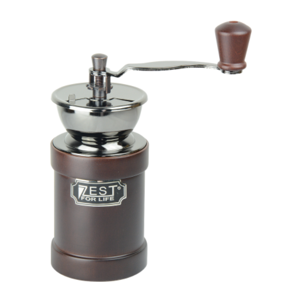 Drewniany młynek ręczny w stylu retro z cermicznym mechanizmem mielącym, mechanizm posiada regulację mielenia, więc sami możemy decydować jaki stopień zmielenia ziaren chcemy uzyskać. Dodatkowym atutem młynka jest przesłonka nad mechanizmem oraz głęboki zbiorniczek na kawę zmieloną. Ręczne mielenie ziaren kawy jest znacznie lepszym sposobem niż przy użyciu młynków elektrycznych, gdyż mechanizmy w młynkach ręcznych nie nagrzewają się, dzięki czemu zmielona kawa jest bardziej aromatyczna. Młynki marki Zest for Life zostały wyprodukowane z myślą o miłośnikach świeżo zmielonej i aromatycznej kawy, a ich jakość jest wysoko oceniana przez użytkowników. Główne zalety: mechanizm mielący z ceramiki, duży zakres regulacji wewnętrzny zbiornik - kawa się nie rozsypuje solidna, drewniania obudowa 2 lata gwarancji