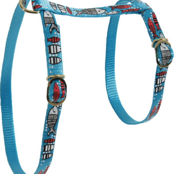 Kolorowe spacery!Szelki z serii "Sardine", z atrakcyjnym wzorem, zapewnią kotu komfort dzięki zastosowaniu nylonu - solidnego i łatwego w utrzymaniu w czystości tworzywa.Dostępne są w kolorze turkusowym.