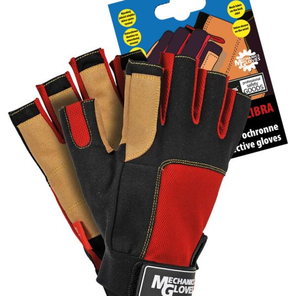 Rękawice ochronne wykonane z jasnej skóry syntetycznej połączonej z tkaniną, bez końcówek na palcach