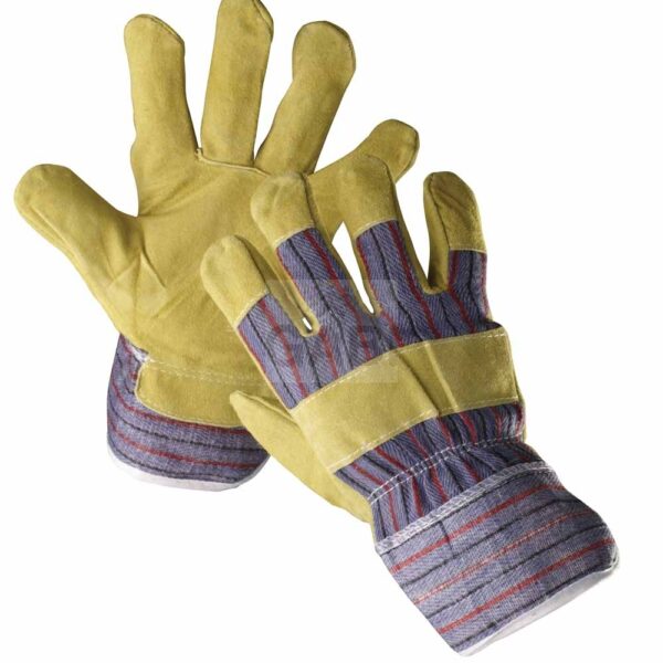 Rękawice wzmacniane dwoiną świńską, z podszewką w części chwytnej dłoni, grzbiet oraz mankiet bawełniane