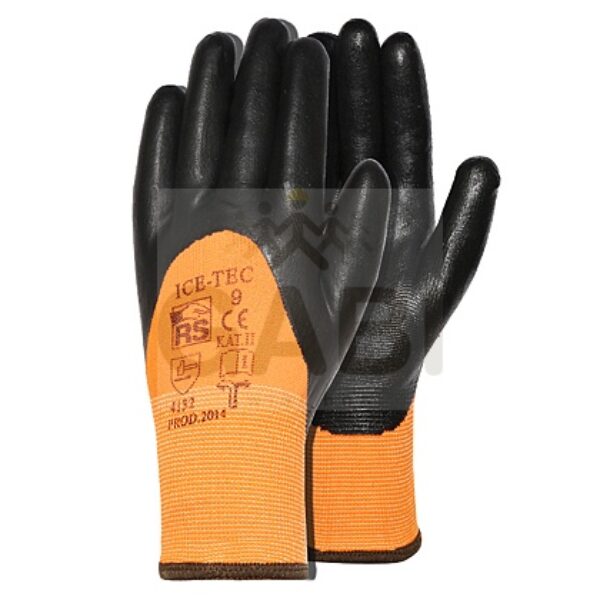 ICE TEC jest powleczony do wysokości nadgarstka czarnym nitrylem. Rękawica ma dzianą akrylową wkładkę. Wykończona jest ocieplana wkładką z drapowanej przędzy akrylowej. Dzięki temu nawet jeśli zostanie zwilgocona błyskawicznie schnie. Mieszanka nitrylu zastosowana w tej rękawicy ma optymalne stężenie, a utwardzacze są dobrane tak, by zwiększały wytrzymałość powłoki nitrylowej przy zachowaniu optymalnej ceny. Pokrycie nitrylem, aż do nadgarstka zapewnia doskonałą wodoodporność i olejoodporność. Rozmiarowanie rękawicy pozwala na dobranie idealnego rozmiaru do dłoni – aby umożliwić wygodną pracę, zarówno tę o charakterze ogólnym i monterskim, jak i wymagającą bardzo dużej precyzji. Zakończenie miękkim ściągaczem utrzymuje rękawicę we właściwym położeniu na nadgarstku i nie uciska go.