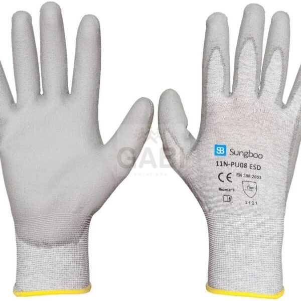 Rękawice antyelektrostatyczne powlekane PU 11N-PU08 ESD Sungboo POLSKI PRODUCENT