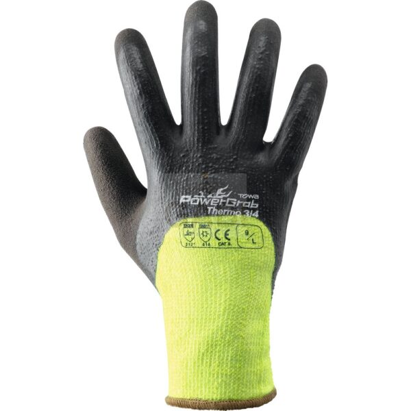 355127 - Bezszwowe rękawice TOWA Model POWERGRAB® THERMO ¾, akrylowo-poliestrowe pokryte lateksem, jaskrawo żółto-brązowe
