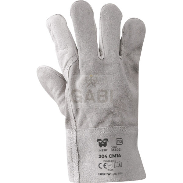 368021 - Rękawice MAC-TUK Model 204 CM 14, z bydlęcej skóry licowej i dwoiny bydlęcej wysokiej jakości z długim mankietem - 14 cm - jak w rękawicach spawalniczych ( nie posiadają jednak certyfikatu wymaganego dla spawaczy )