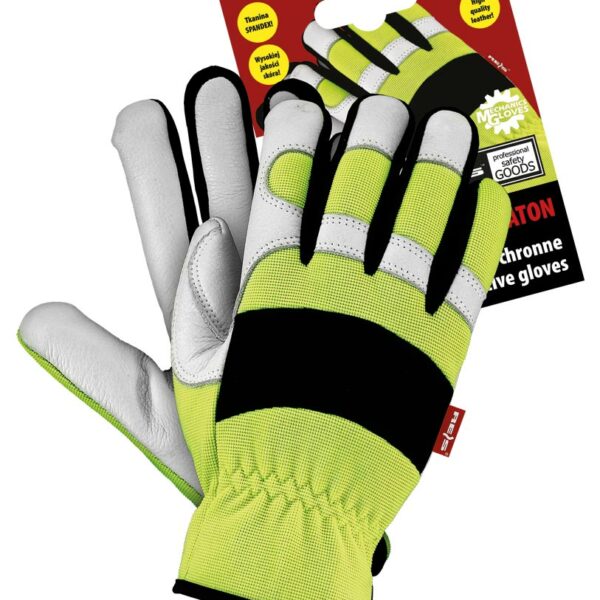 Rękawice ochronne wykonane z wysokiej jakości skóry bydlęcej połączonej z materiałem