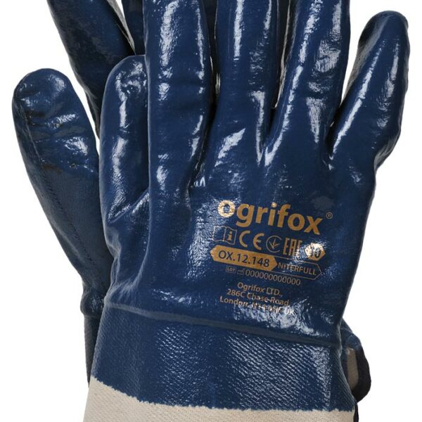 Rękawice ochronne powlekane nitrylem, zakończone usztywnianym mankietem