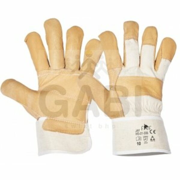 Podszewkowane rękawice w części dłonicowej wykonane ze świńskiej skóry