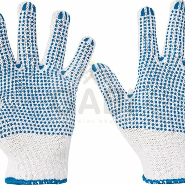 Dziane, bezszwowe, obustronne rękawice z mieszanki poliester /bawełna, nakrapiane PVC, elastyczny ściągacz