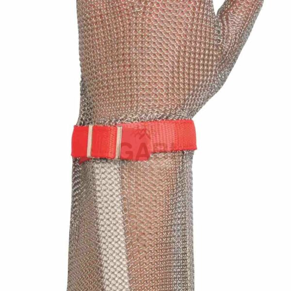 Oburęczne rękawice z pierścieni ze stali nierdzewnej, z paskiem ściągającym w przegubie, z ochroną przedramienia, dają maksymalną ochronę przeciwprzecięciową, mankiet o szerokości 15 cm. 0114 0006 99 080 czerwone, 0114 0006 99 090 niebieskie, 0114 0006 99 100 pomarańczowe, 0114 0006 99 110 fioletowe